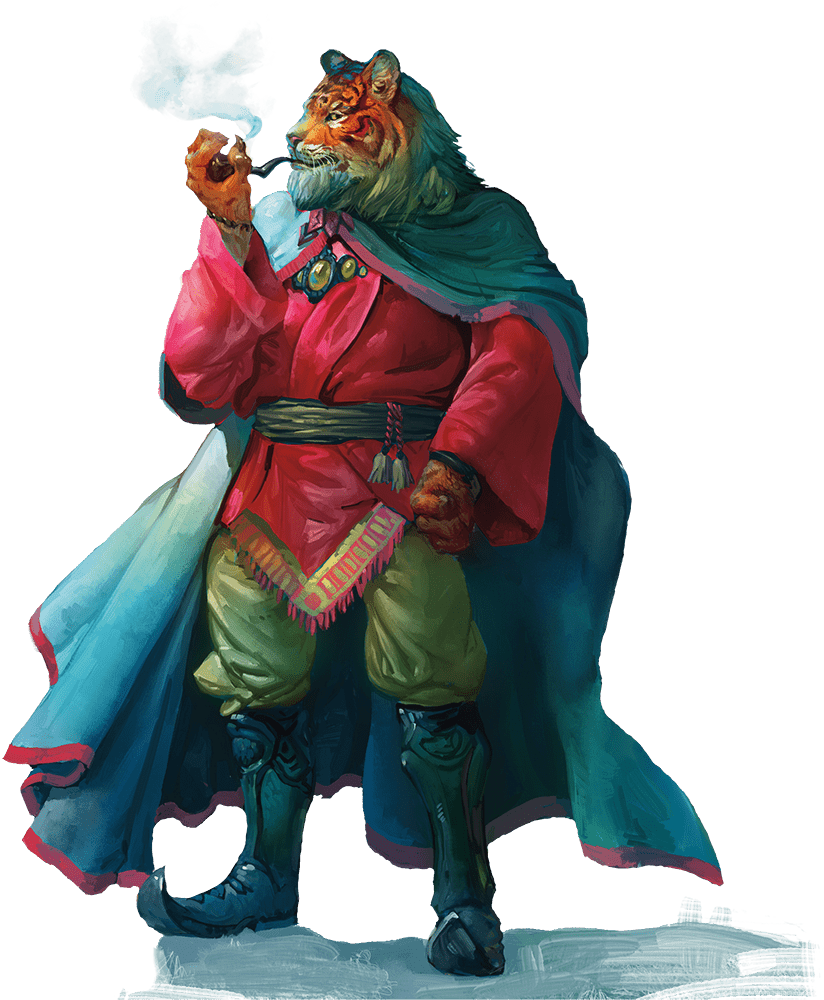 The true form of a rakshasa was almost never seen due to their ability to assume almost any humanoid figure, but their lavish taste ensured they were almost always wearing the finest garments and most precious jewelry. Their true forms were most commonly humanoids with the heads of tigers and luxurious fur to match their attire, although it was not unusual for them to possess the heads and features of carnivorous apes, crocodiles or mantises, with high ranking rakshasas being rumored to have multiple heads. One rakshasa known to Inther Blackfeather of Luskan even possessed a scorpion-like tail.[