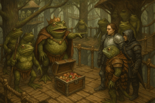 Kex asks for further reinforcements, he wishes us frog speed on your journey. If you need to rest, stop at bog bottom’s brewery. Jartha makes an excited gesture upon the word brewery. Jartha is like hey sorry also have you seen moonpepper? No. Jartha asks about amberthymoe, verdant ash. Trees that would create the ash, grow to the north, where our holy island up north.