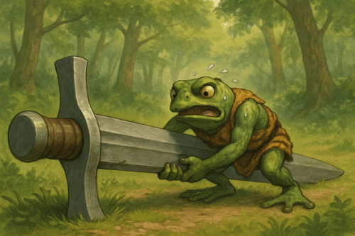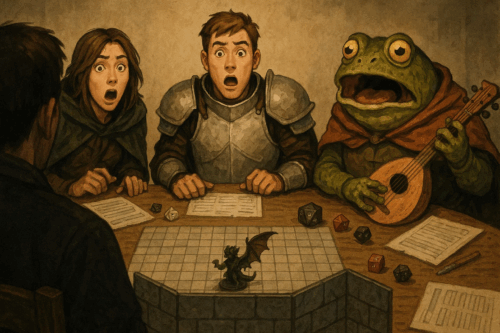 Rel sees us in the morning – says Gladius had to take off. Says WhisperB needs to speak with us and a bullywug messenger kid is here for Kex. Says name’s BIggums, Croakley Biggums. Says he’s come from Kex’s dad. Kex is very skeptical.